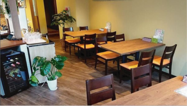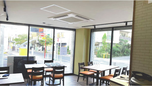 白を基調とし家具でポイントをつける明るい店内